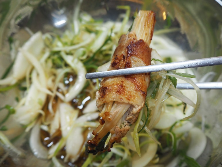 ● 대패가 익으면서 팽이버섯과 부추의 향이 어우러져 맛있게 구워져요.