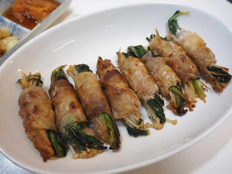 이렇게 간단하게 대패말이를 완성할 수 있었어요. 재료 준비도 간단하고, 만드는 방법도 쉬워서 누구나 따라 할 수 있는 요리예요. 부드러운 대패와 아삭한 팽이버섯, 부추가 어우러져 입안 가득 맛있는 향과 식감을 선사하죠. 소스까지 곁들여 맛있게 즐겨보세요!