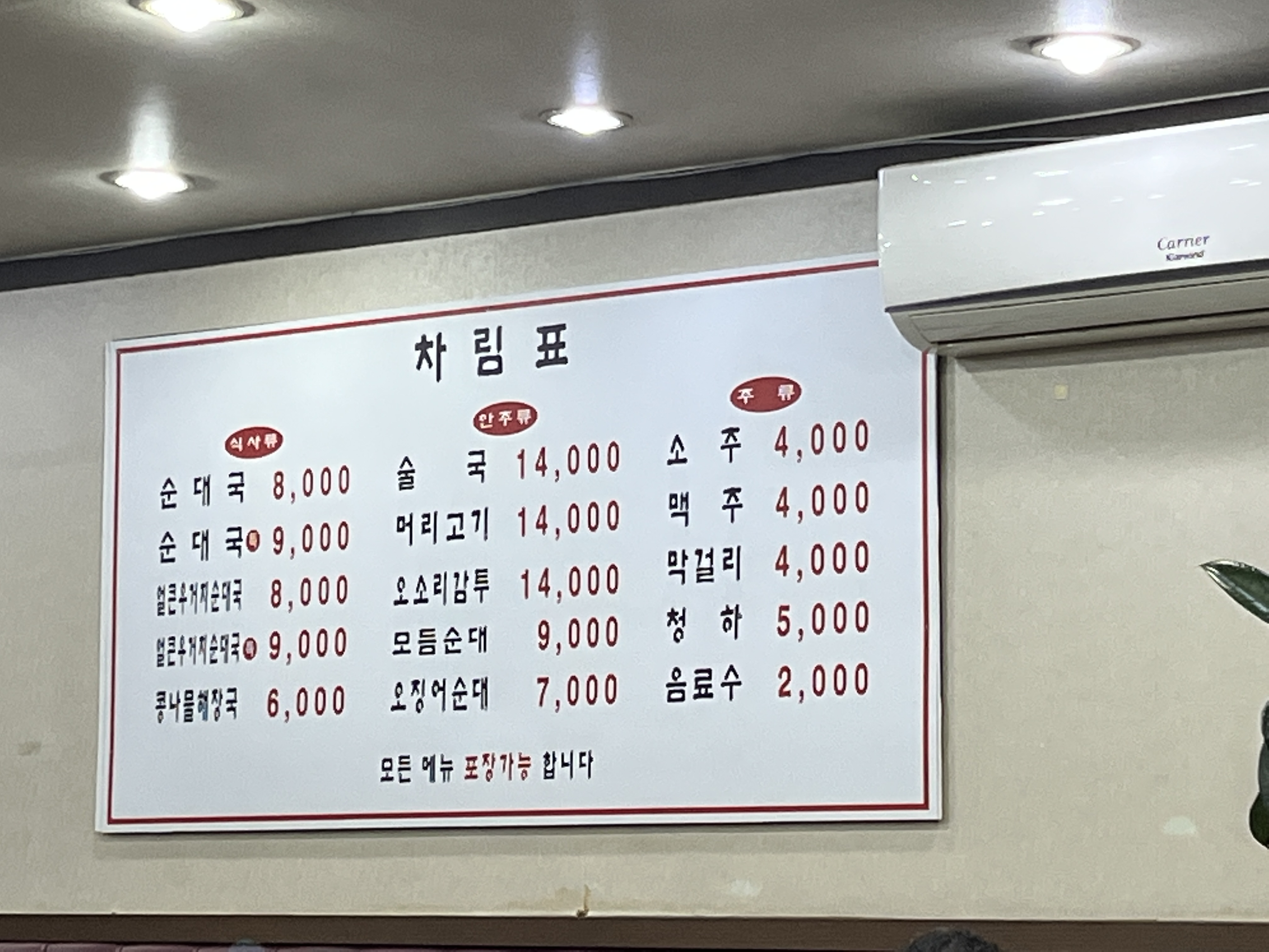 까치산역맛집 본순대국 메뉴판
