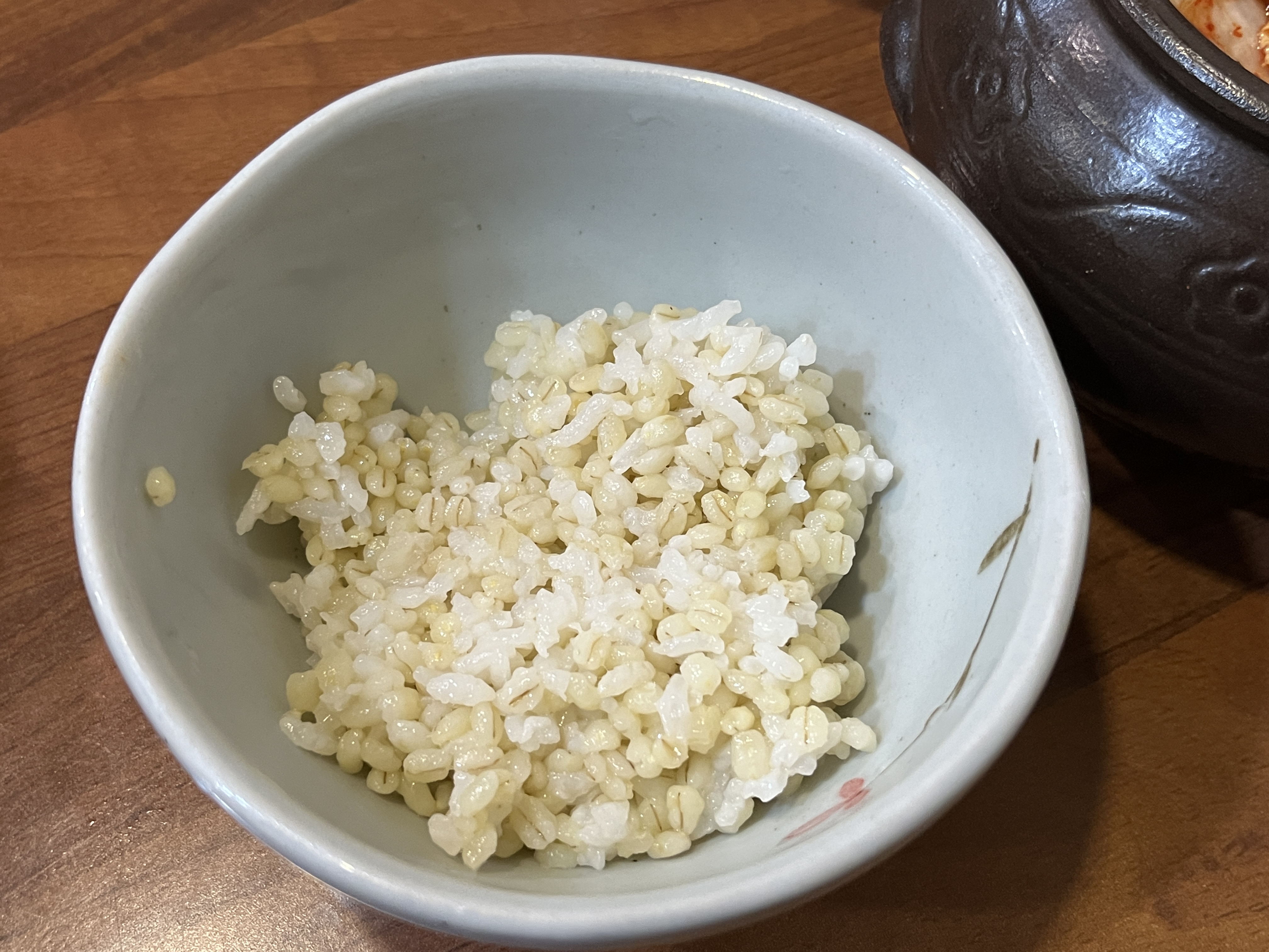 메뉴가 나오기 전에 소량의 보리밥을 주는데
