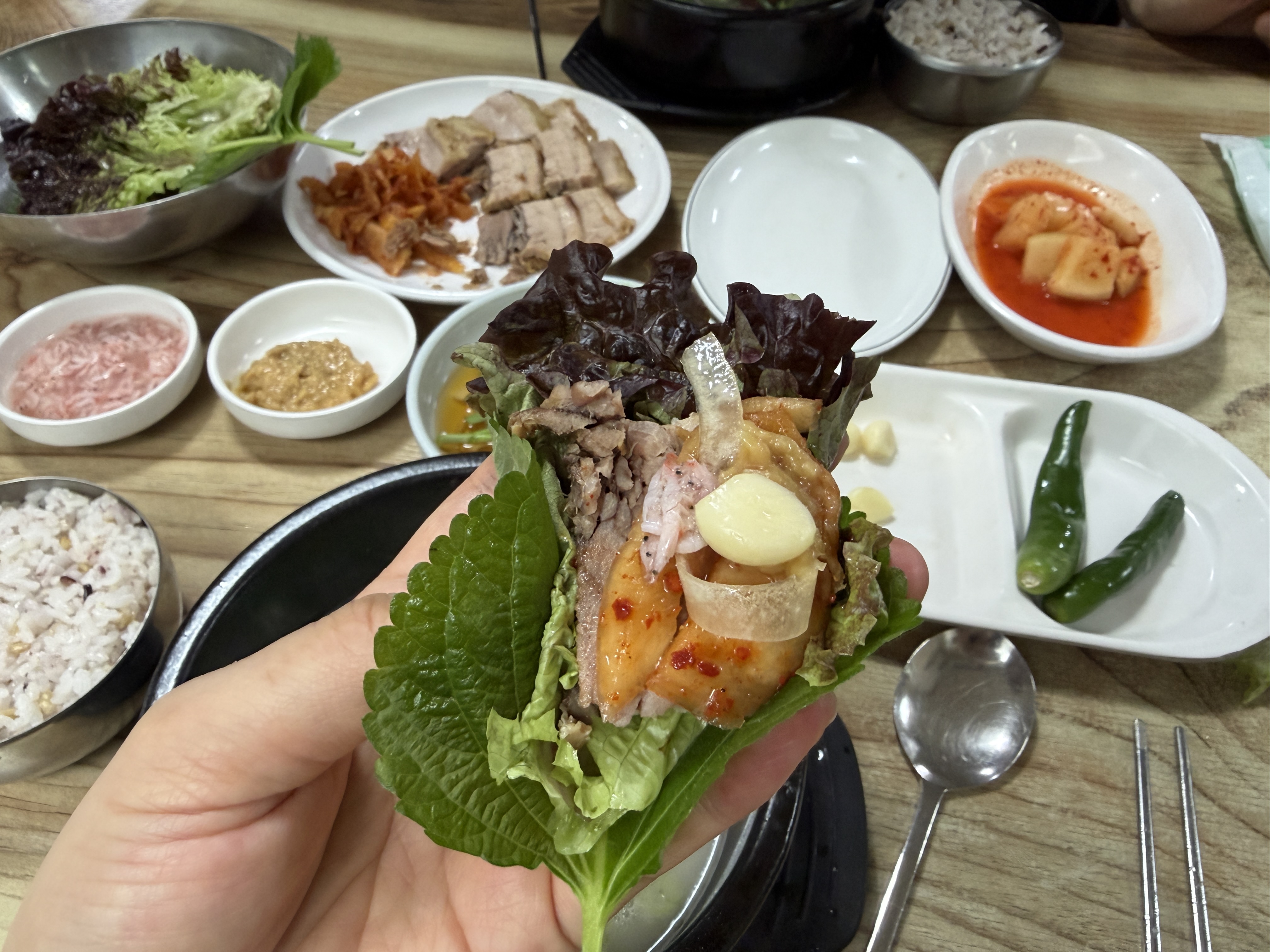 이렇게 쌈 싸서 먹으면 되는데 임산부라 그런지 돼지 잡내가 살짝? 나긴 한 거 같았는데