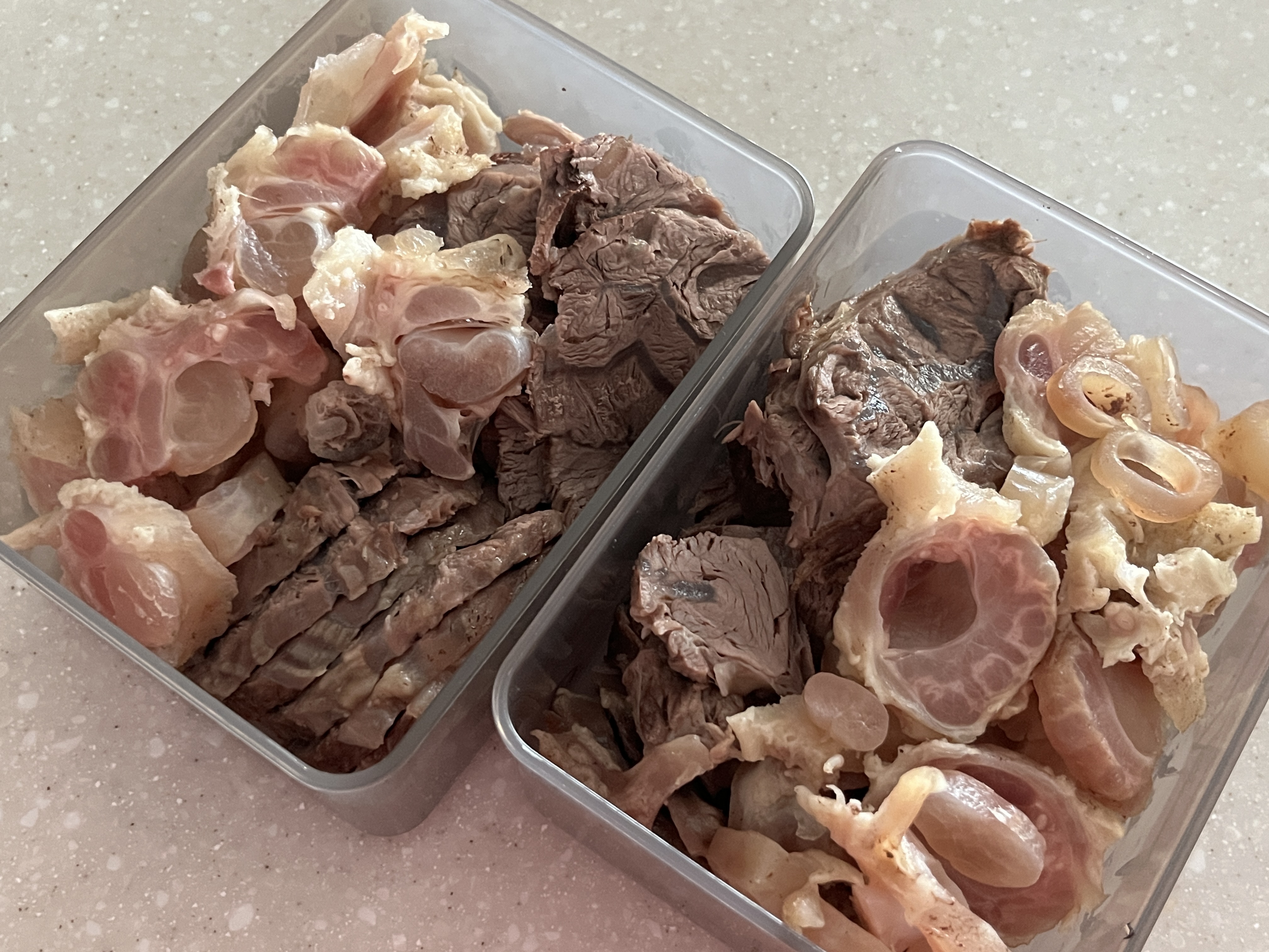 1) 손질 된 아롱사태와 스지를 물에 담가 핏물을 빼주기