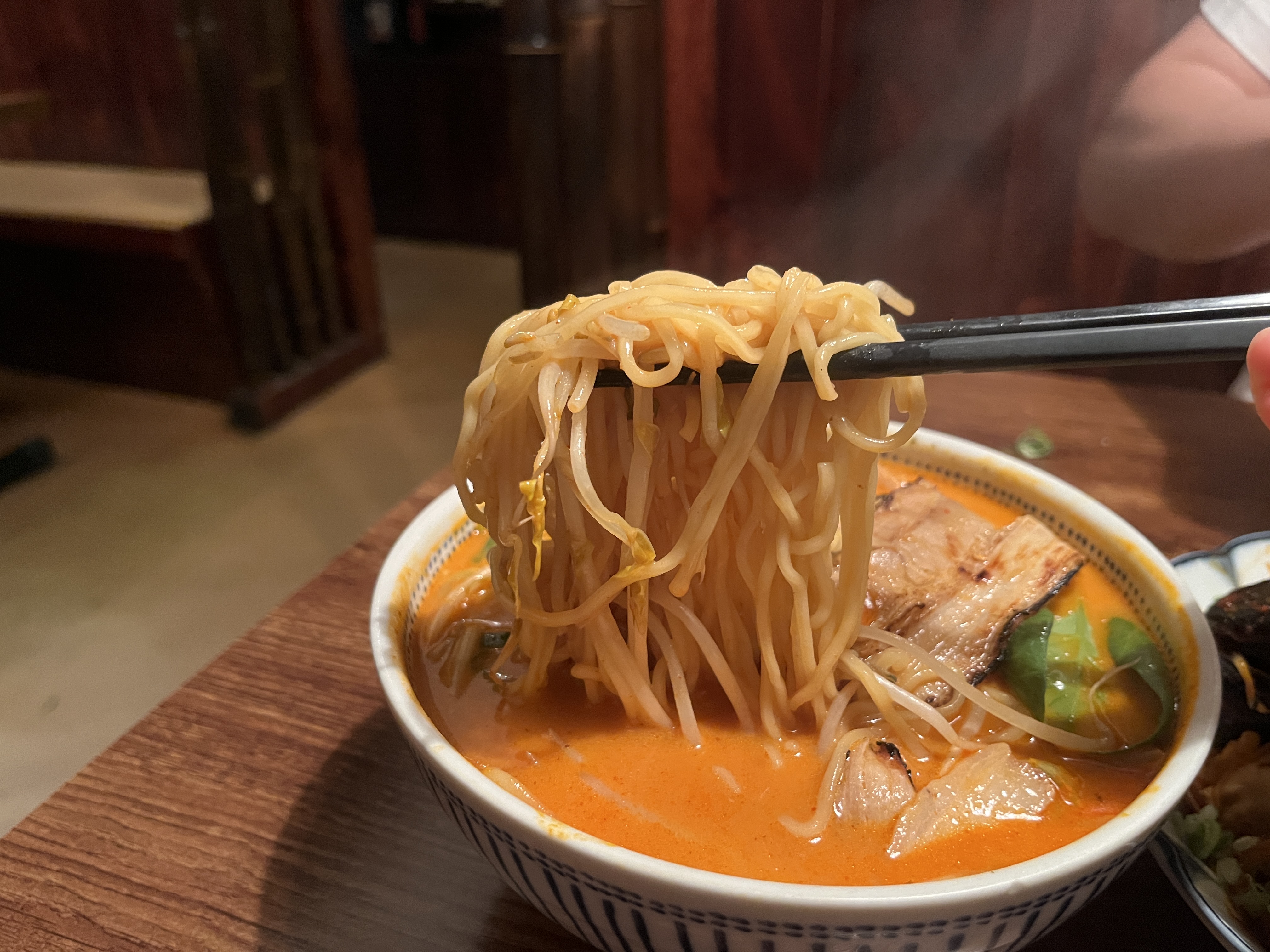 춘 라멘은 신랑이 정말 감탄하면서 먹었던 메뉴예요. 국물이 사골 베이스의 진한 맛이었고, 일본에서 먹었던 라멘보다 훨씬 맛있다고 했어요. 면도 안 퍼지고 국물도 진하고, 고기의 불향도 느껴져서 정말 맛있었어요. 신랑이 회사 근처라면 점심으로도 자주 먹고 싶을 정도라고 했답니다.
