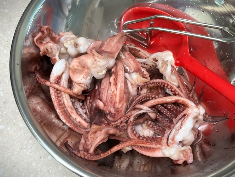 • 오징어가 냉동이 되어있다면 해동을 꼭 하기